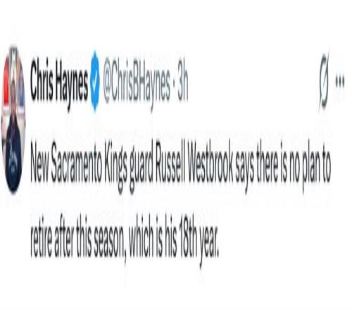 雷速体育10月20报道 据名记Chris Haynes报道,国王新援卫威斯布鲁克在接受媒体采访时表示,目前并无在本赛季结束后退役的打算。