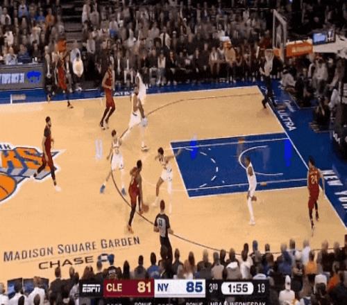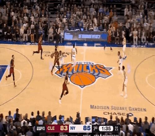 上半场尼克斯65-50骑士,有点想把比赛打花的迹象。