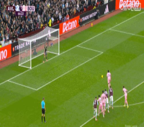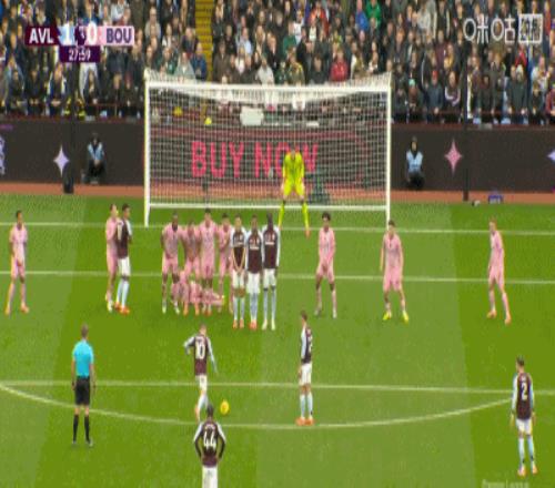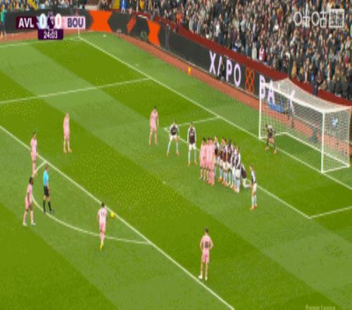 第28分钟,正反手教学,布恩迪亚位置相近的任意球直接破门,维拉1-0