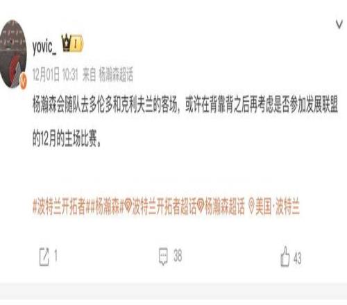 大家都知道,最近杨瀚森跟随开拓者征战NBA常规赛,在他们主场结束对战雷霆的那场比赛中,小杨最终还是只获得了不到5分钟的上场时间,一分都没有拿到,到现在为止已经连续三场比赛没有得分进账。